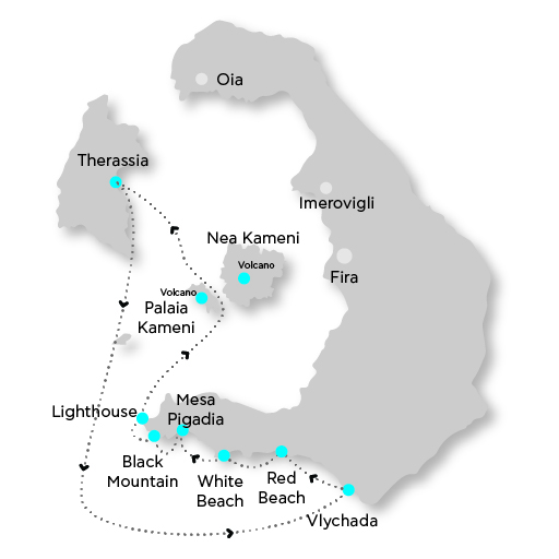 Set sail in the morning and explore the crystal-clear waters and picturesque coastline of Santorini. Visit iconic spots such as Red Beach, White Beach, and the volcanic hot springs. Take a refreshing dip, snorkel in vibrant underwater landscapes, or simply bask in the sun on deck.